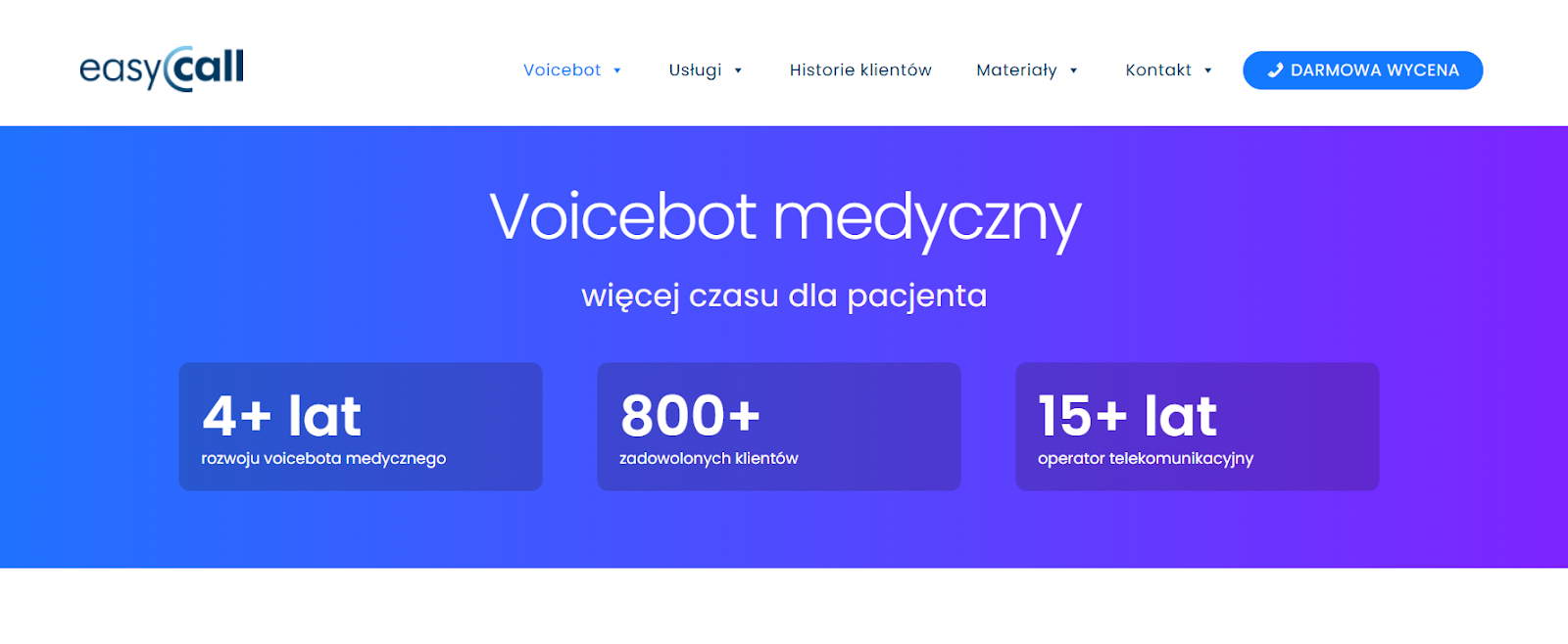 TU Zdrowie (170 tys. klientów) - największe wdrożenie voicebota medycznego w Polsce.